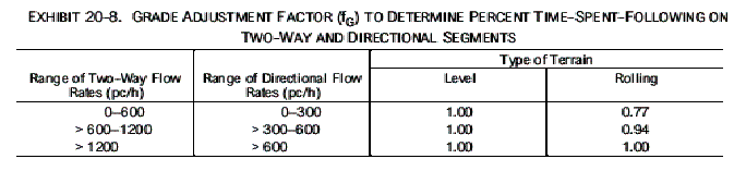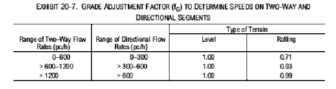 used in LOS analysis. These adjustments are the PHF, the grade adjustment factor (fG),