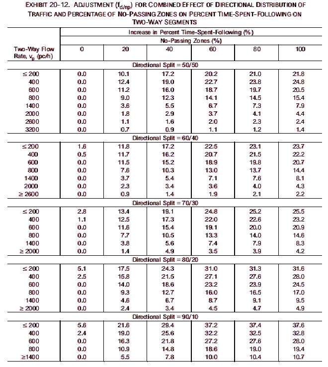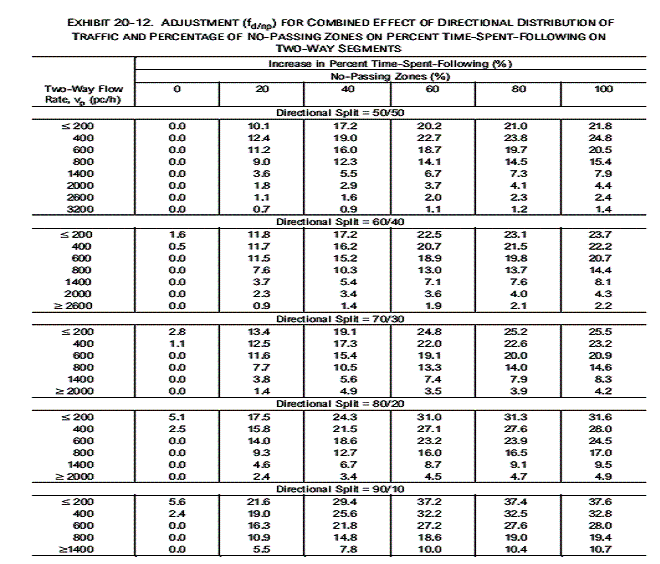 rate, the directional distribution of traffic, and the percentage of no-passing