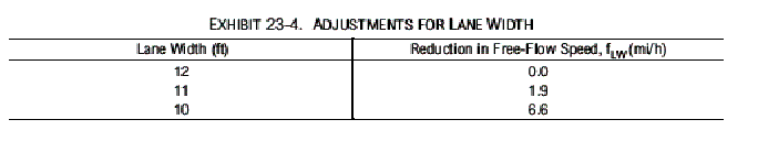 adjustment (fLW) relates to the effect of lane widths on Free Flow