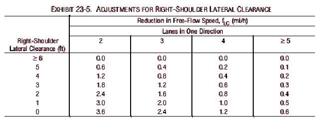 right shoulder lateral clearance on Free Flow Speed, and is dependent on the